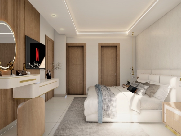 Habitaciones secundarias con cornisas y techo en yeso.